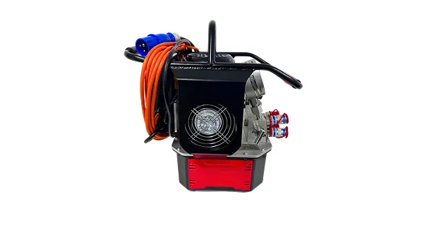 Bomba de torque automática de tres etapas, de diseño compacto y liviano, apta para operar una o dos llaves hidráulicas simultáneamente. Incorpora depósito de aceite de aluminio con indicador de nivel, manómetro de alta presión y ajuste de presión infinitamente variable entre 70 y 700 bar. Equipada con radiador de alta eficiencia, permite operación continua 24/7. Motor intercambiable, adaptable a distintos voltajes.