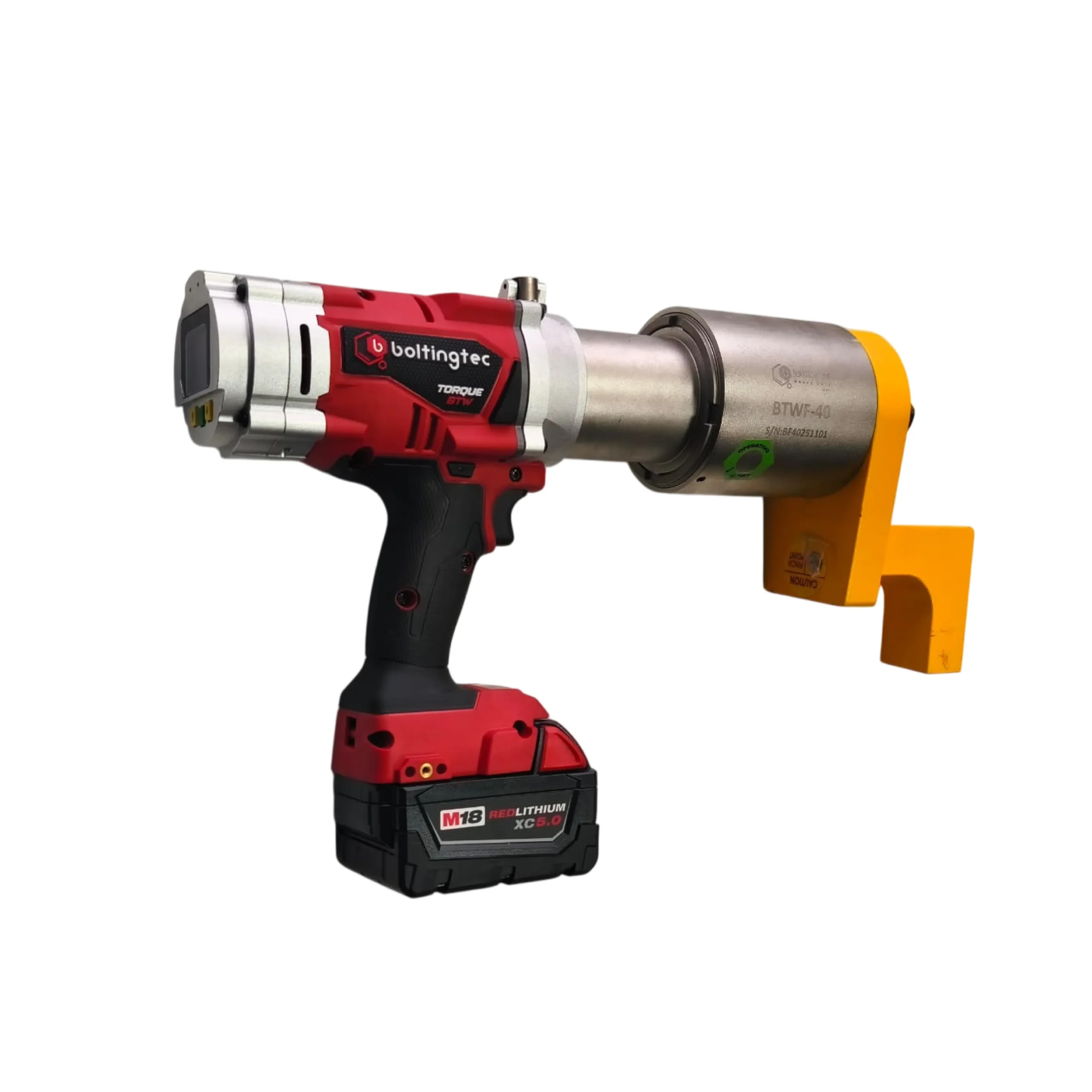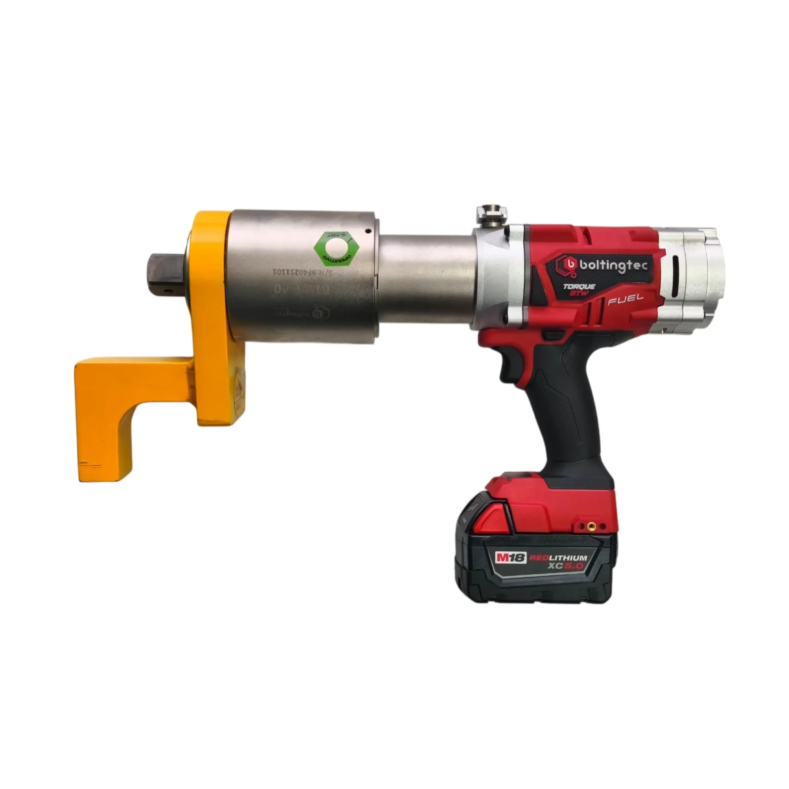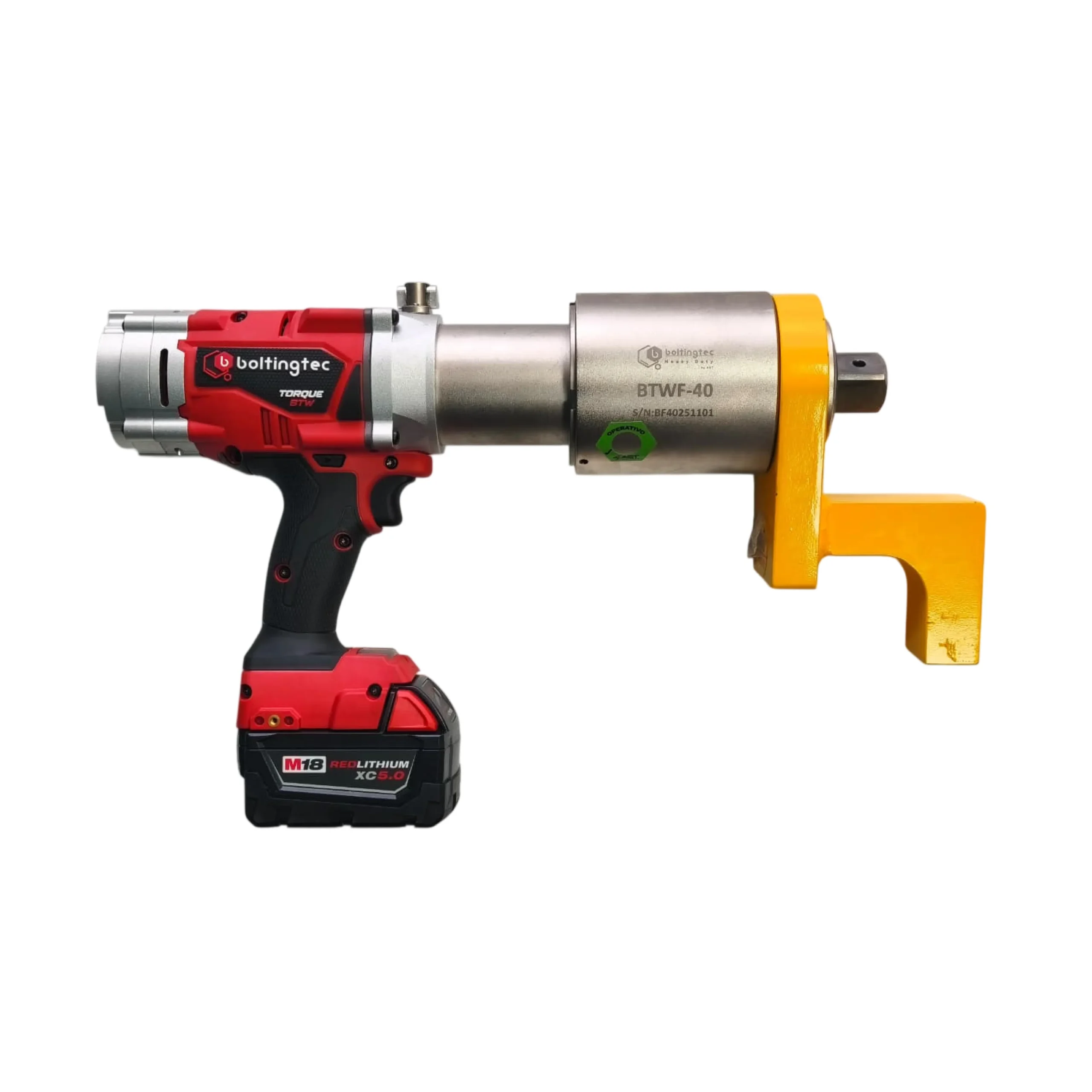La BTWF es una herramienta de torque a batería con motor brushless, rango de 100 a 8.000 N·m y precisión de ±2%, diseñada para aplicaciones industriales exigentes. Incorpora pantalla LCD, transmisión automática de dos velocidades y control en tiempo real del torque, garantizando eficiencia, autonomía y aprietes confiables.