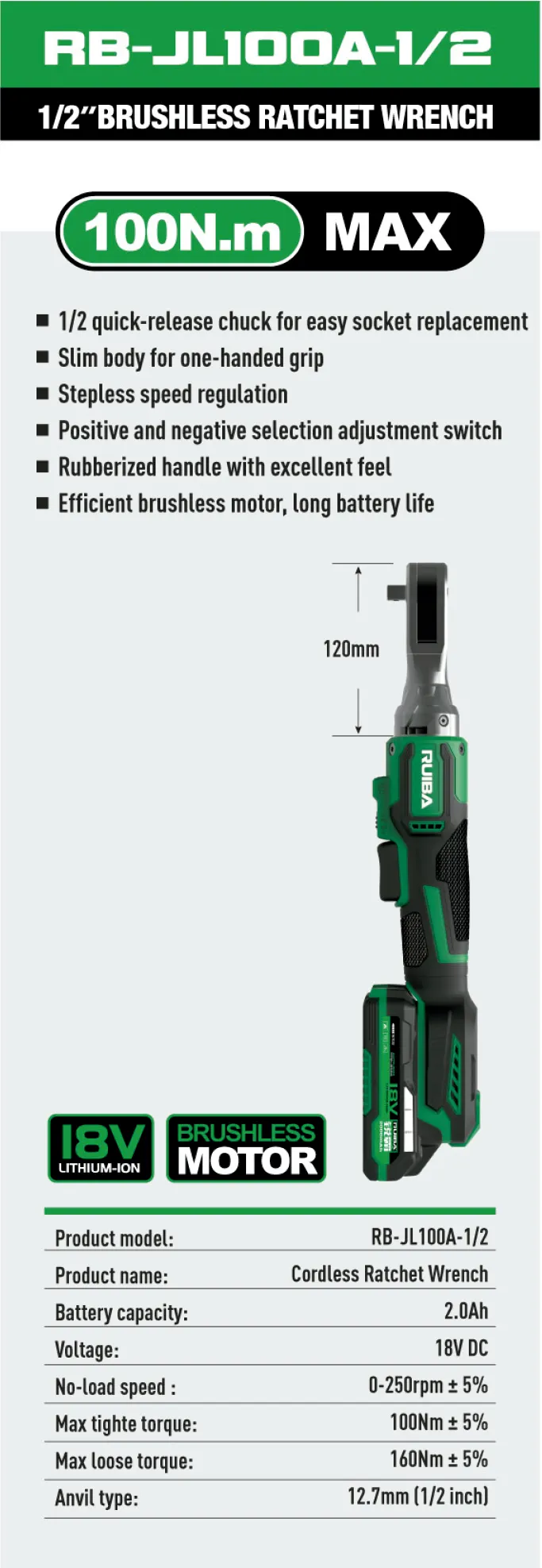 Llave de impacto 1/2″ con mandril de liberación rápida para facilitar el cambio de dados. Su cuerpo delgado permite un agarre cómodo con una sola mano, mientras que la regulación de velocidad continua y el interruptor de selección positiva/negativa ofrecen un control preciso. Incorpora un mango de goma con excelente tacto y un motor sin escobillas eficiente, que asegura una batería de larga duración.
