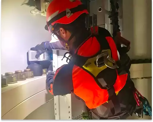 Ofrecemos tensionadores hidráulicos, bombas, mangueras y accesorios, junto con personal calificado y certificado bajo el estándar GWO para asegurar un tensionado de pernos seguro y eficiente en turbinas eólicas.